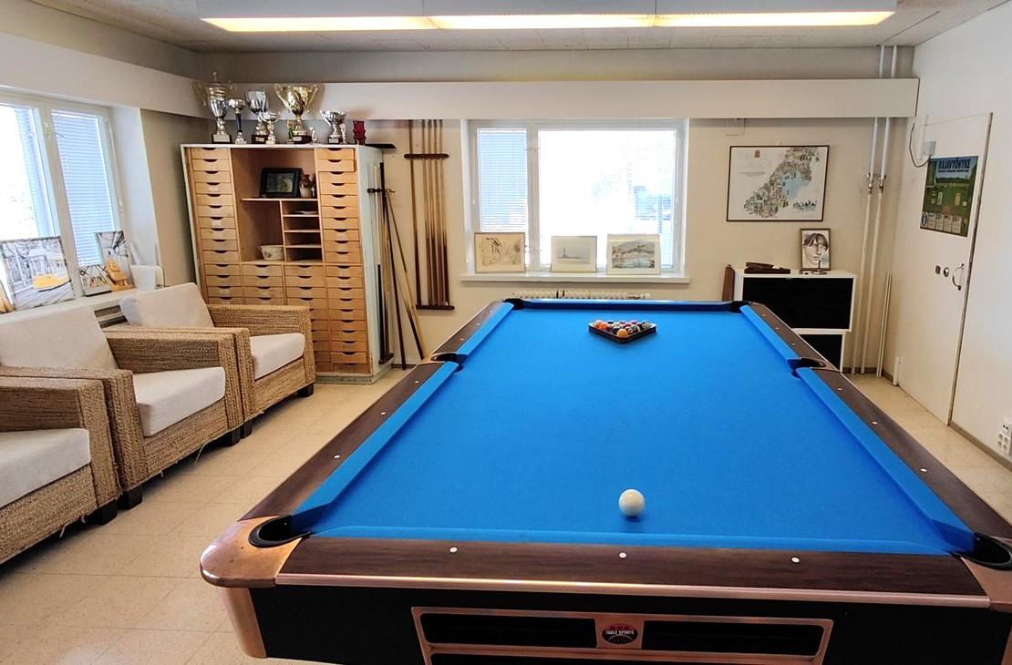 Large television in the lounge and pool table.